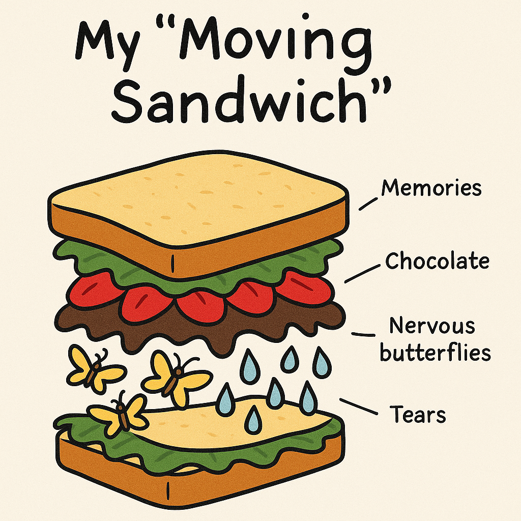 Top with your second slice—hello, new place! Press down gently. Wrap in kindness, pack with courage, and take a big bite.