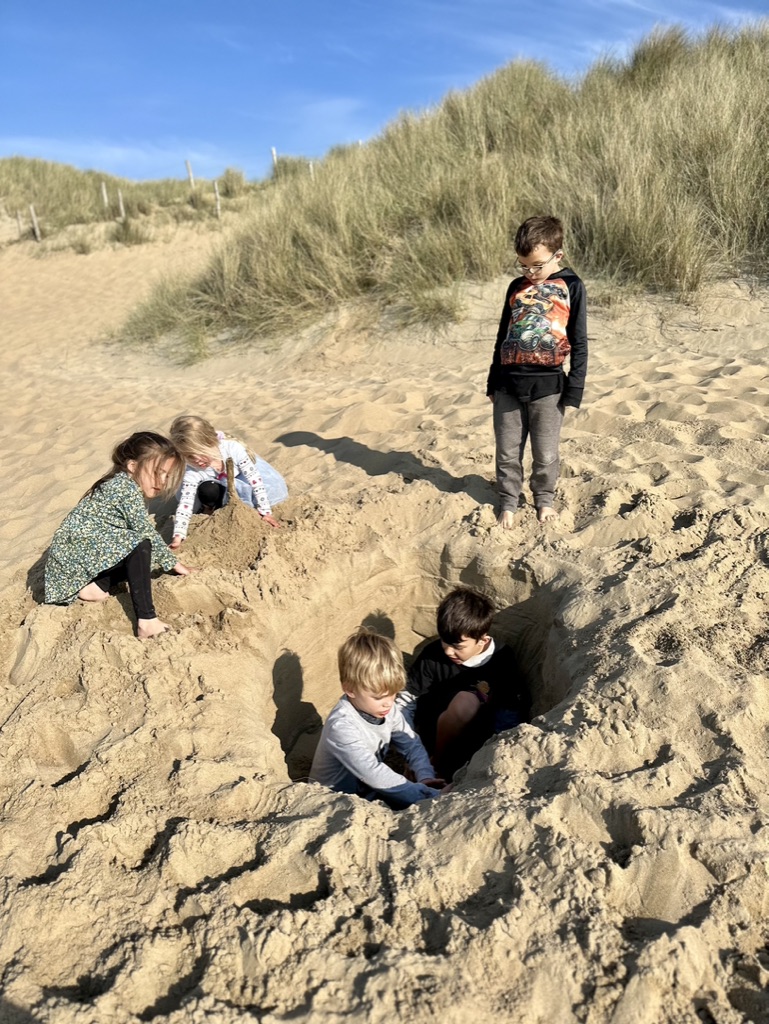Hear kids playing around and laughing.